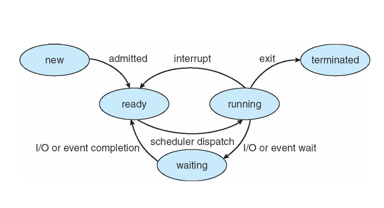 - CPU Scheduling會在下列四個行程狀態的變更中做出決策: